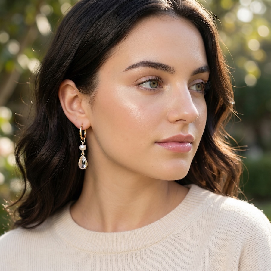 Deze gouden oorbellen zijn bezet met een bungelende kristal en een prachtige parel. Afgewerkt met 14 karaat goud zijn deze beauties een tijdloze aanvulling voor je sieraden collectie.